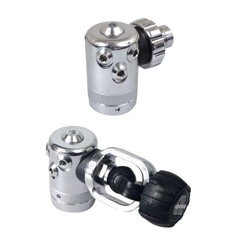 DS4 first stage – no rotating turret. Unique over-balanced, diaphragm design - as the diver descends, the over-balancing feature allows the medium pressure gas in the hose to increase at a rate faster than ambient. This results in superior performance at depth. An environmental dry system keeps water out of the main spring chamber thus preventing ice buildup and keeping silt and contamination out.