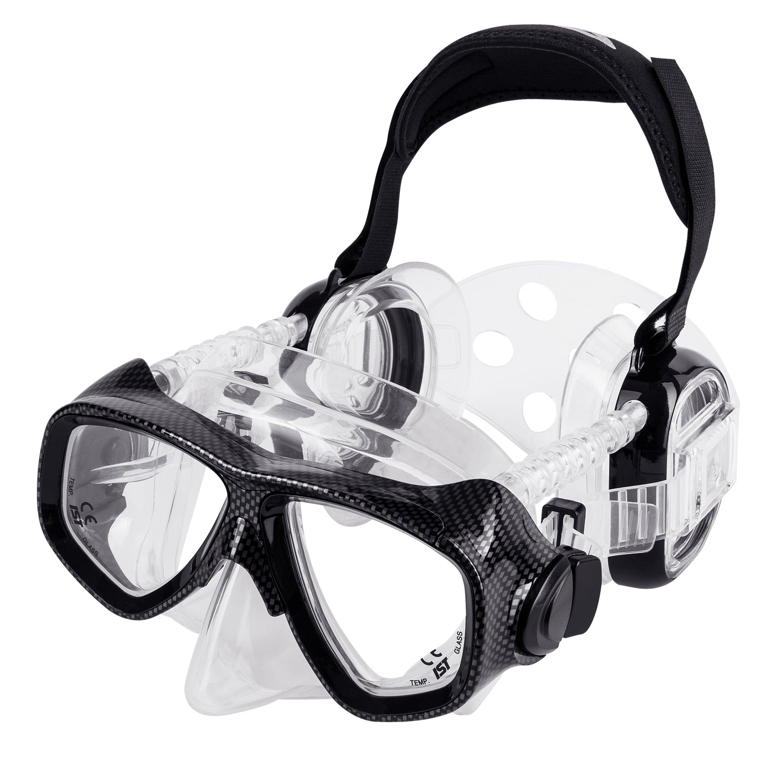 - A special tube and seal system automatically equalizes ear pressure as the diver exhales into the mask