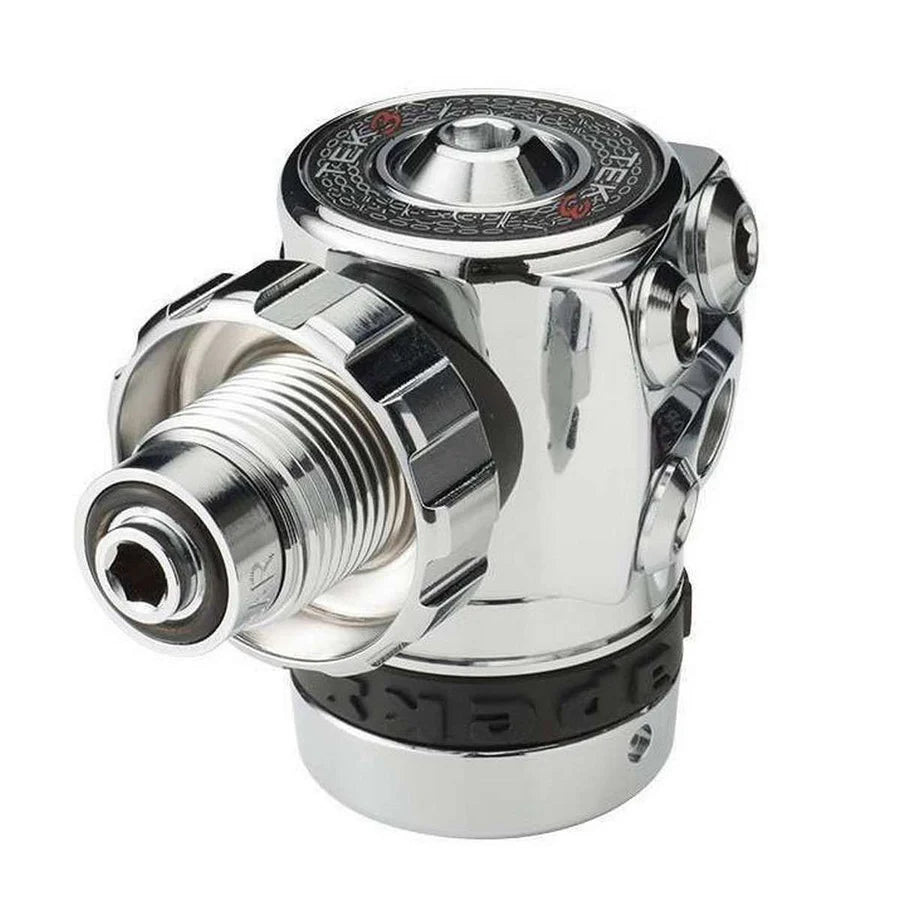 - Unique over-balanced, diaphragm design - as the diver descends, the over-balancing feature allows the medium pressure gas in the hose to increase at a rate faster than ambient. This results in superior performance at depth.